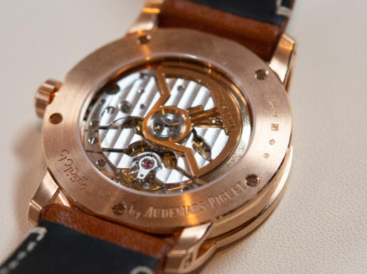 The cal. 5900’s compact dimensions are impressive given its double-barrel architecture and centre-seconds layout, being just 0.5 mm thicker than the cal. 7121, which is positioned as an ultra-thin movement. Overall, the Vaucher-derived movement is not dissimilar from AP’s in-house movements, featuring a full balance bridge and a free-sprung balance, making it fit right in.