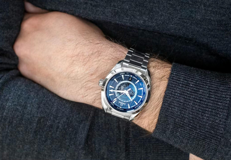 The best replica Omega Seamaster Aqua Terra 150M Co-Axial Master Chronometer GMT Worldtimer 43MM watches, henceforth known as the Seamaster Aqua Terra Worldtimer (it’s in fact a worldtimer, not a GMT), is a sporty take on a classic complication that looks great while still managing to feel slightly unexpected in the Omega lineup. For me, Omega has always been mainly about the tool watches, namely the legendary Speedmaster chronograph and the Seamaster diver. Worldtimers, on the other hand, tend to be put forward by brands associated with luxury, a category that Omega has increasingly been comfortable operating in while maintaining its technical advantages. This unlimited model, available in both Sedna Gold and stainless steel, follows a platinum limited-edition worldtimer that Omega launched two years ago in a run of 87 pieces.
